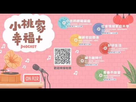 【小桃家幸福+】由桃園市政府家庭教育中心製播,每一集邀請不同來賓聊聊家庭裡的大小事,也有溫馨的家庭小故事,是一個適合大小朋友共同聆聽的頻道! ⭐⭐⭐115年週更節目 ⭐⭐⭐ ❤️第一週(三)、(六)【小志的親職圖鑑】分享各式教養話題,搞定家庭親職大小事。 ❤️第二週(三)、(六)【社會情緒家庭共學】以 SEL 五大核心能力為架構,提供實用的親子對話工具、家庭情緒練習。❤️第三週(三)【聊親密談關係】針對不同關係議題進行對話分享,讓我們在關係中勇敢闖關。❤️第三週(六)【好好生活】一起聊家庭、工作與生活的平衡,找到屬於你的好好生活方式。❤️第四週(三)【讀力新時代】分享各式圖書資源、閱讀策略及數位媒體的資訊判讀技巧,鼓勵親子一起共讀,培養新時代的多元閱讀力與思辨力! ❤️第四週(六)【青春不踩雷】邀請本市國高中學生錄製,討論志向、學習、戀愛、社群及家人關係等議題。